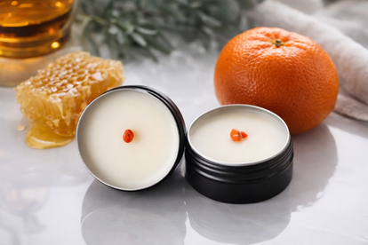 elke kaars word met zorg gegoten en verrijkt met pure eterische olién, voor een zachte en verfijnde geurbeleving. laat je omarmen door de zoete, zonnige tonen van Honey Peach , die je doen denken aan rijpe perziken op een warme zomerdag . of kies je voor de frisse elegantie van Mandarin Bloom, een sprankelende mix van citrus en bloemige accenten die elke ruimte laat opleven . de warme gloed van kaarslicht en suptiele geur zorgen samen voor een ontspannen sfeer - perfect voor een rustig avond moment, een selfcare routine of als stijlvol cadeau.